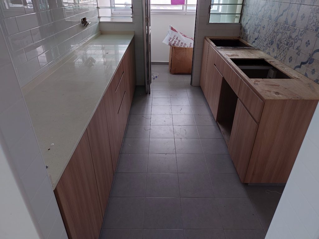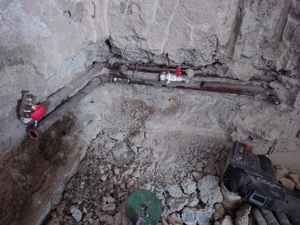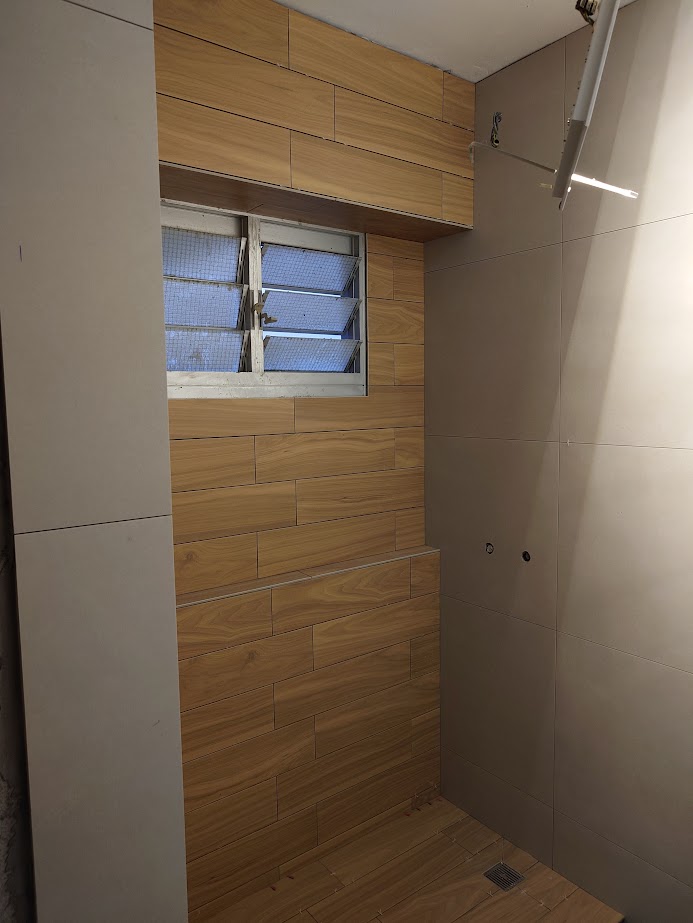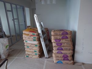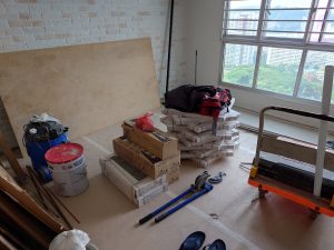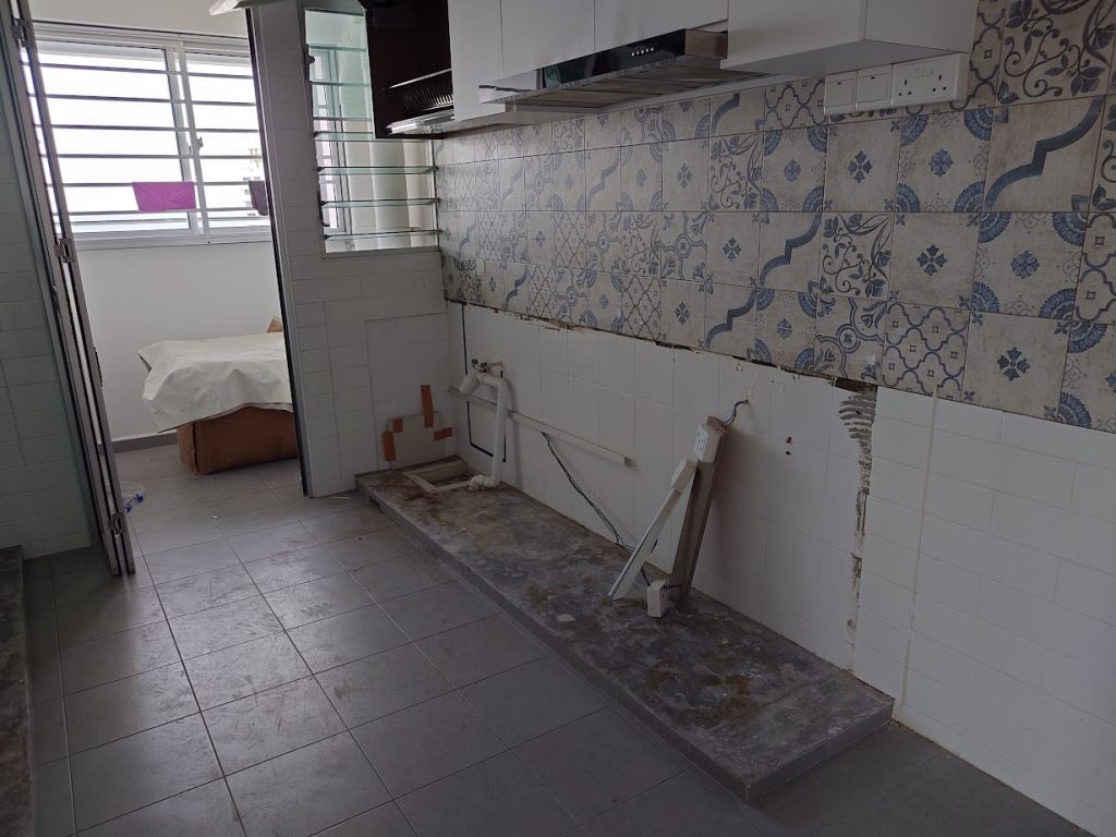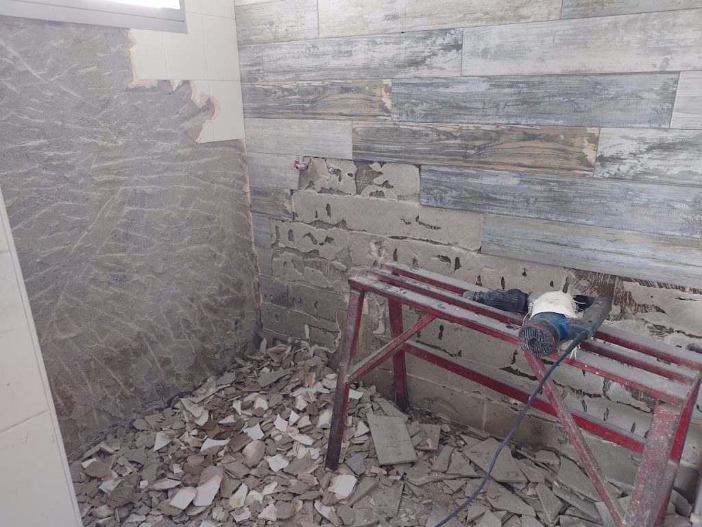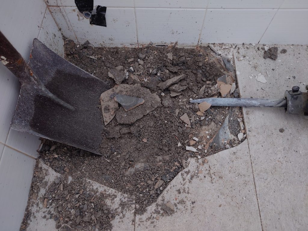 Hacking work, tiling work, vinyl installation