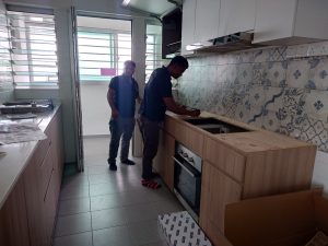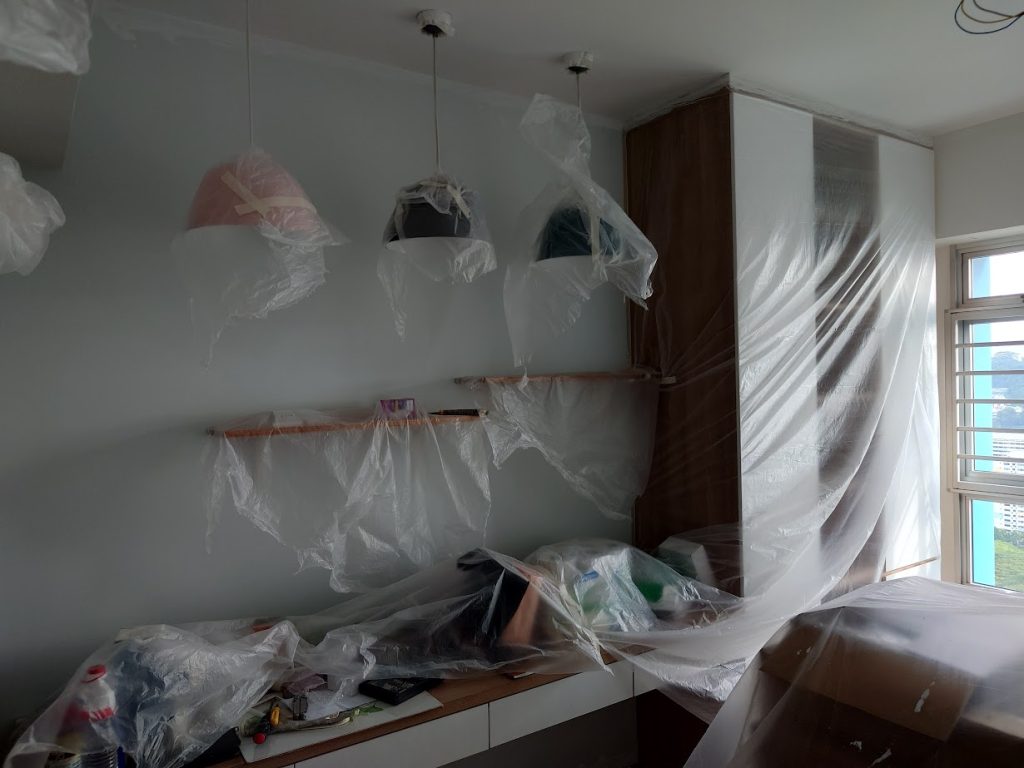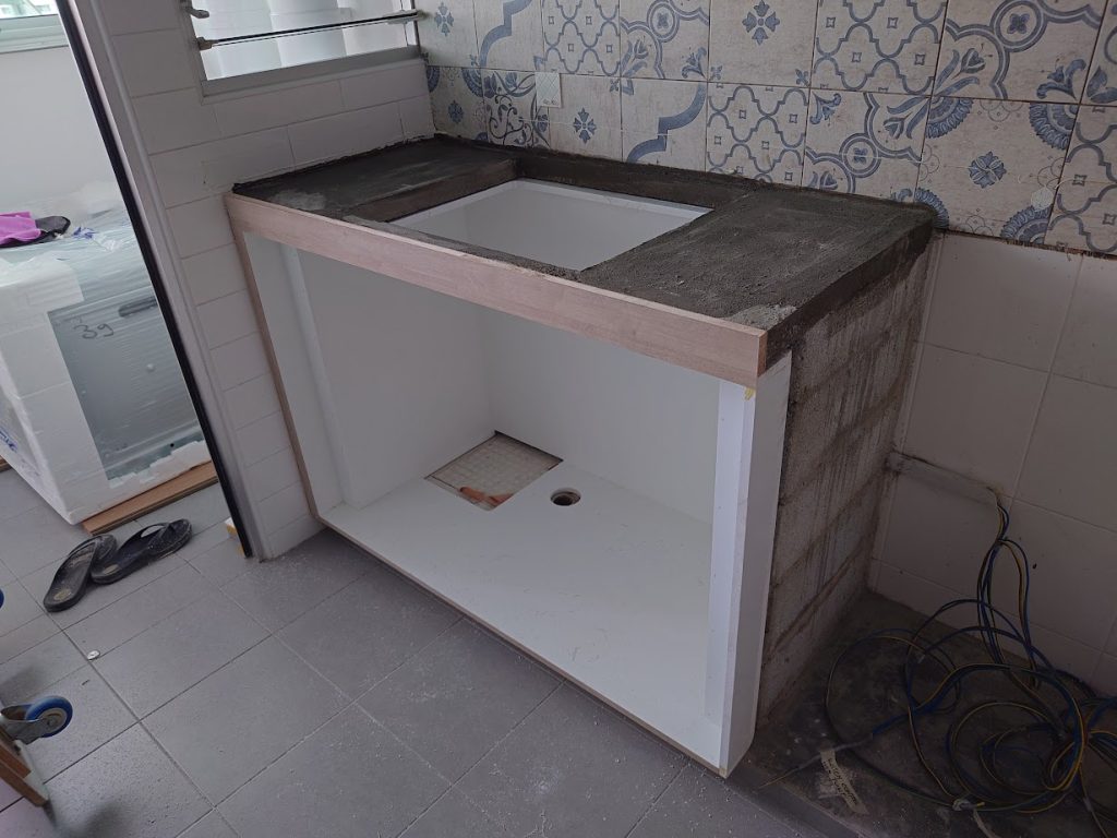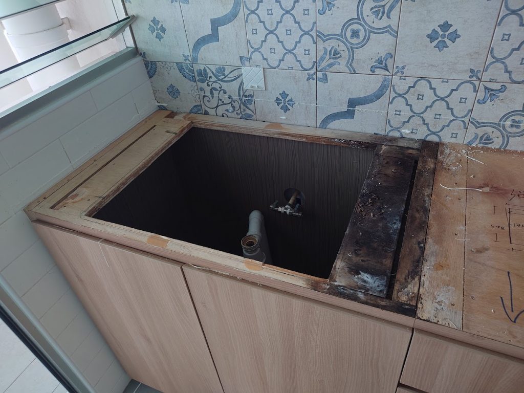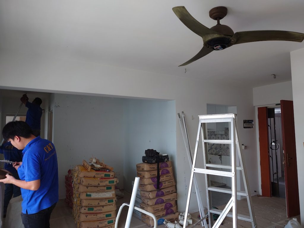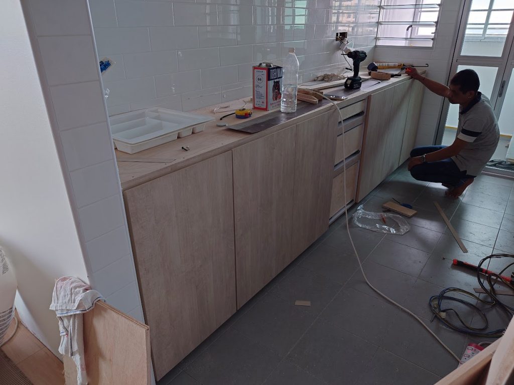 Hacking work, tiling work, vinyl installation