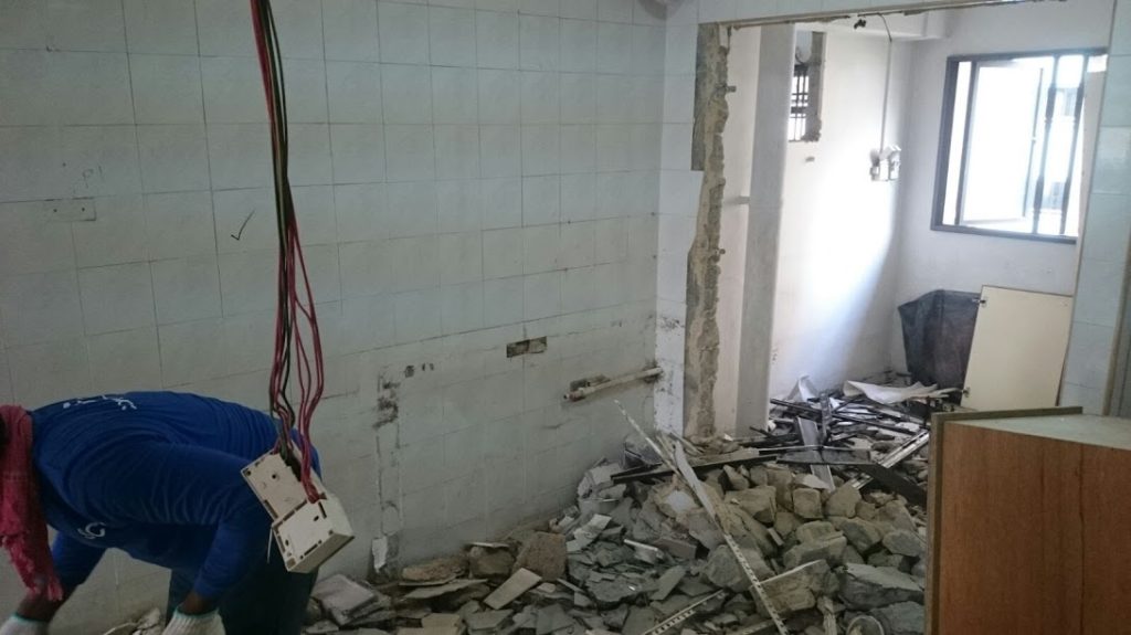 Renovation work (Hacking work, tiling work, electrical work, carpentry work, painting work & door installation.)