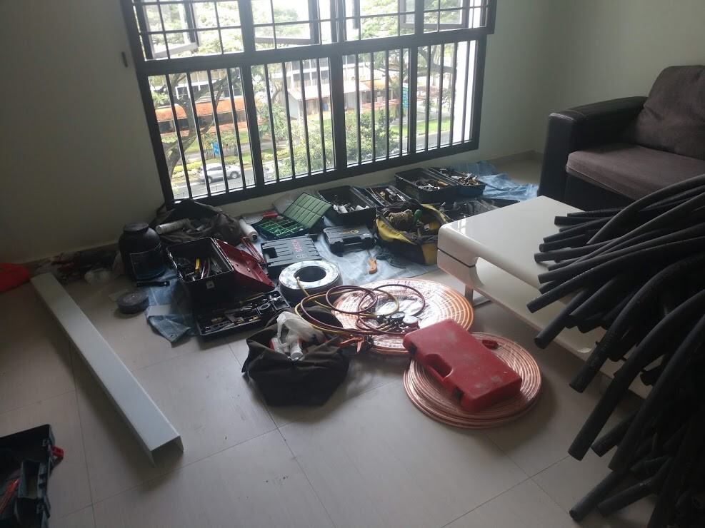 Electrical work, plumbing work, air-con installation, carpentry work and painting work.