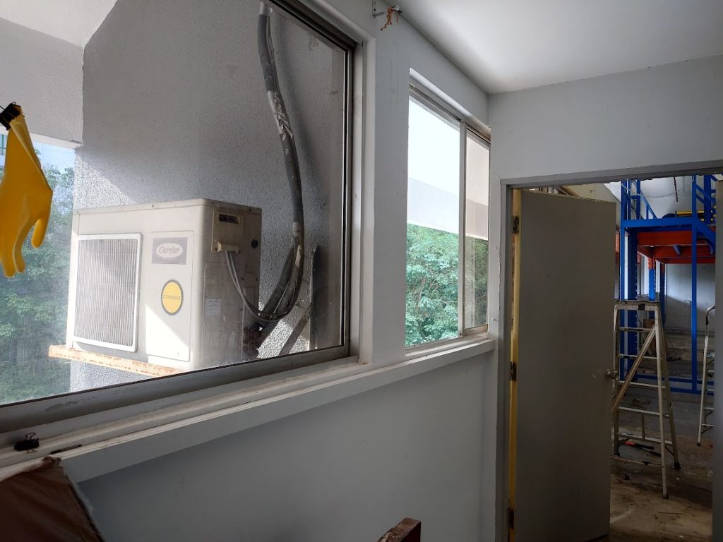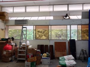 Reinstatement work, electrical wiring, air-con installation work and installation of acrylic panel